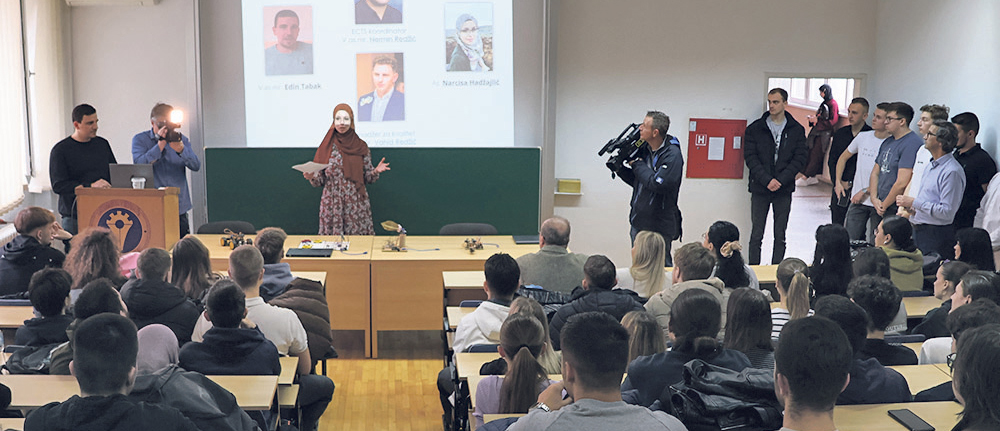 Prošlog četvrtka je u amfiteatru Politehničkog fakulteta Univerziteta u Zenici održana prezentacija rezultata studentskih projekata koji su realizovani u okviru studijskog programa Softversko inženjerstvo srednjoškolcima Grada Zenice. Na ovom fakultetu studira više od 700 studenata, 1. i 2. ciklusa studija, a odnedavno je uveden i 3. ciklus, doktorski studij. Prezentacija je okupila studente, profesore, srednjoškolce i goste zainteresirane za inovacije i praktičnu primjenu znanja iz oblasti tehnologije i inženjerstva.